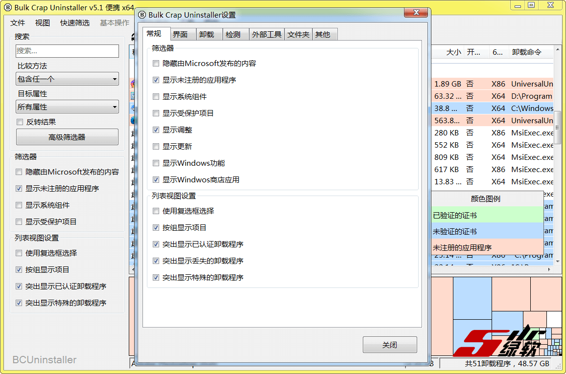 今天的软件分享是 Windows 平台的 Bulk Crap Uninstaller,该软件是5ilr绿软最新搜集整理的一款功能十分强大的应用卸载程序。支持大批量卸载应用,无论是游戏应用还是应用应用都可以卸载的干干净净,不留任何一点痕迹在计算机内,这样就可以保证系统的纯净、安全、稳定,操作过程非常简单,只需跟着提示点击选项就能够完成整个卸载过程,对于新手来说没有任何困难,是一个非常智能的小助手,赶快下载体验吧!