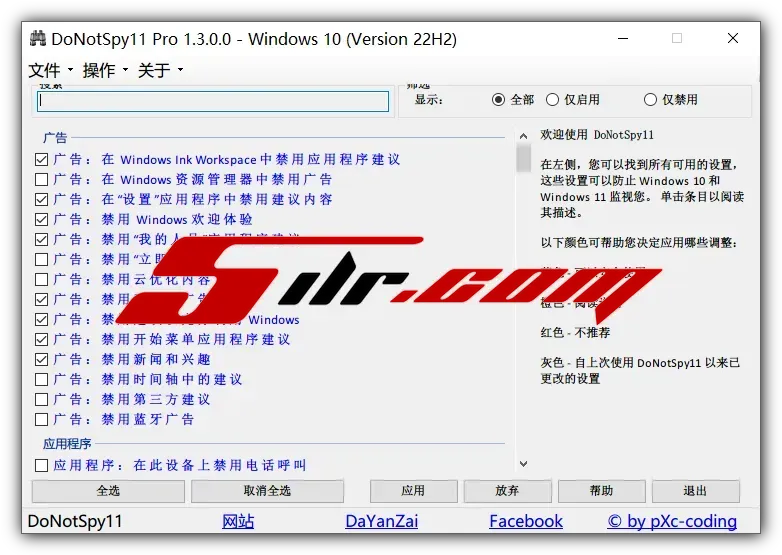 蓝奏云:支持一键禁用Windows遥测与广告ID的隐私保护工具 DoNotSpy11 Pro v1.3 中文版