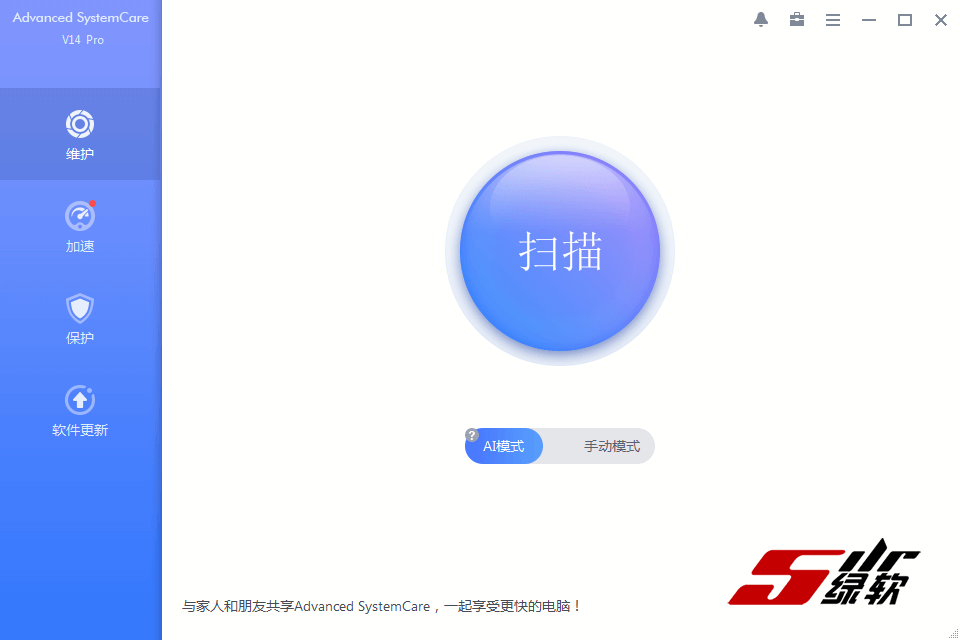 今天的应用分享是 Windows 平台的 IObit Advanced SystemCare,该软件是绿色软件下载站最新搜集整理的一款系统清理维护与安全防护应用,大幅提升整体系统性能和安全!一键AI智能模式,全面扫描优化修复系统,拥有性能加速模式、系统优化、网络加速、启动项优化、应用更新、实时监视清理、隐私安全保护等功能,可以防病毒及间谍应用,查看器跟踪保护隐私,保护电脑免受病毒攻击。