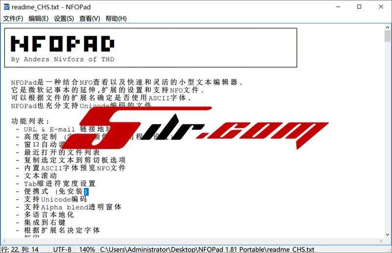 蓝奏云:NFO 文件查看器 NFOPad v1.81 中文绿色版