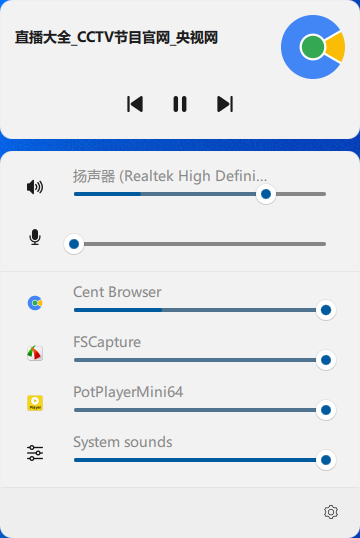 - 应用程序音量混合器:独立调整每个应用程序的音量;